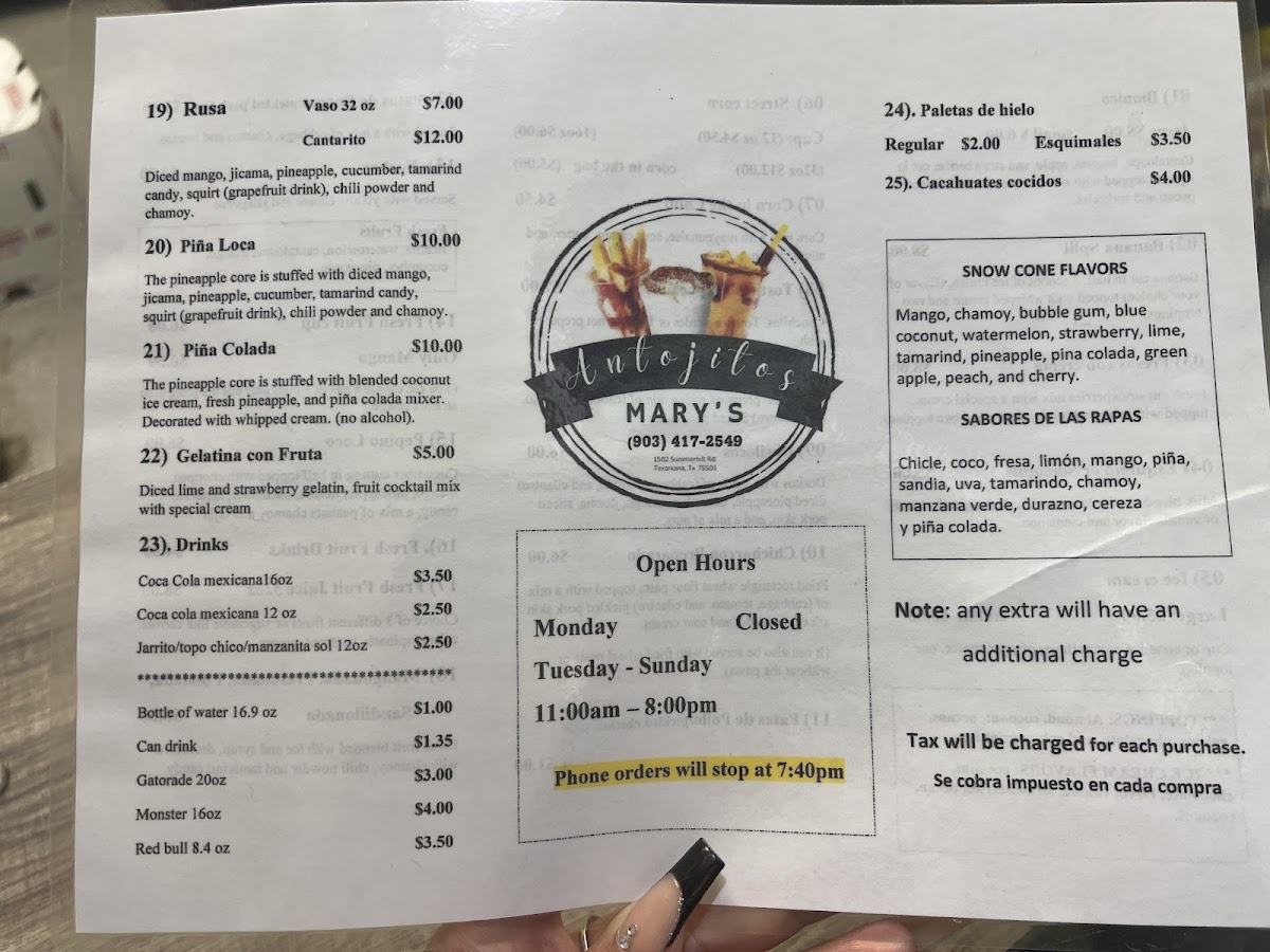 Step right up to Antojitos Mary’S Menu and get ready for a flavor-packed adventure through the heart of Texarkana! From the very first bite, you can tell this isn’t your typical run-of-the-mill spot. Each dish feels like it was crafted with care, blending classic Mexican comfort food with little surprises that make every plate memorable. Whether you’re in the mood for sizzling tacos loaded with fresh toppings, hearty enchiladas smothered in rich sauces, or crispy, golden empanadas that practically melt in your mouth, there’s something here to satisfy every craving.